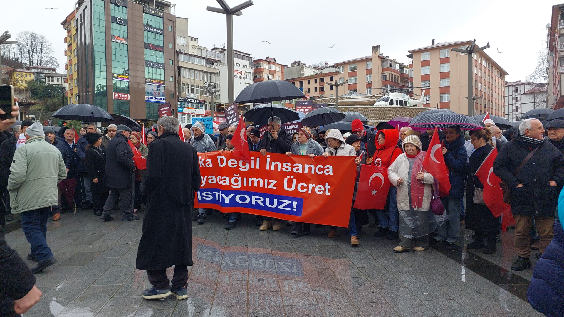 GÖRÜNTÜ :Ali Osman ERTAŞ(RİZE) – CHP Rize İl Örgütü’nün çağrısıyla düzenlenen “Sadaka Değil, İnsanca Yaşayacağımız Ücret İstiyoruz” mitinginde emekliler, işçiler ve çay üreticileri hayat pahalılığına ve yetersiz ücretlere karşı bir araya geldi. Mitinge Sol Parti, EMEK Partisi, Demokrat Parti, Çay Üreticileri Birliği, Tüm Emekliler Sendikası üyeleri, ÇAYKUR mevsimlik işçileri ve çok sayıda yurttaş katıldı.