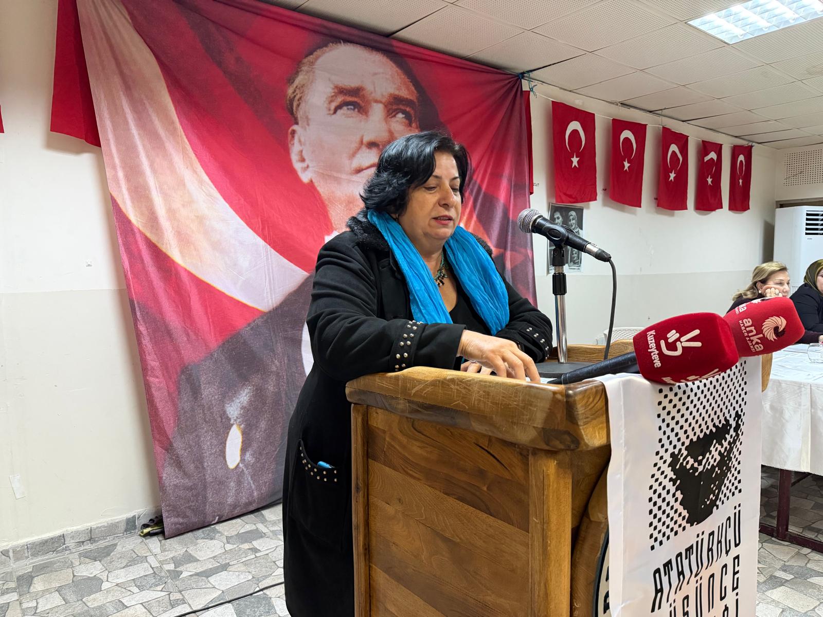 Eğitimci, ressam ve yazar Şükran Yangın Üst ise konuşmasında çocukluk yıllarında ailesinin okumasına izin vermek istemediğini belirterek kendi yaşam mücadelesini anlattı ve kadın cinayetlerine dikkat çekti.