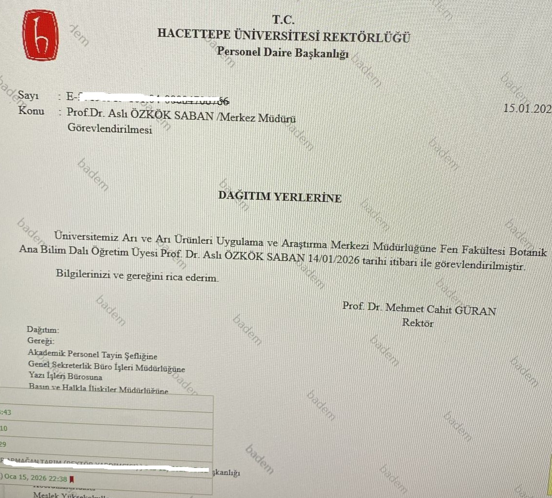 Hacettepe Üniversitesi Arı ve Arı Ürünleri Uygulama Araştırma Merkezi (HARÜM) Müdürü, biyoloji ana bilim dalı öğretim üyesi Prof. Dr. Aslı Özkırımlı görevden alındı.
