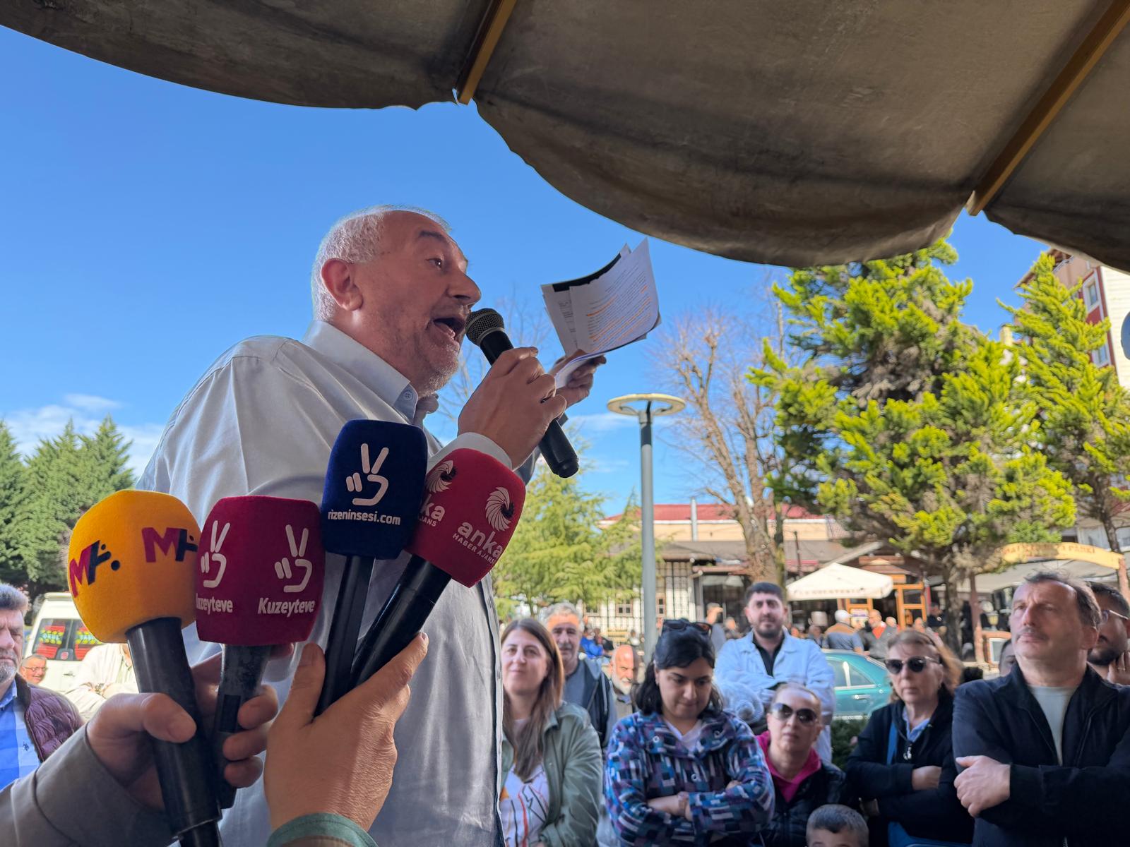 İlçe başkanım çok güzel söyledi: Biz komşuyuz. Şu cami avlusunda birlikte cenazemizi kaldırıyoruz. Yine bu avluda birbirimize başsağlığı diliyoruz. Düğün salonunda aynı horon halkasında oynuyoruz. Peki siz hangi yüzle bakacaksınız? Orada açıklama yapanlar, o bölgede yaşamayan, olmayan şeyleri yansıtan kişiler. İki gün önce Sabah gazetesinde zavallı birine Fındıklı hakkında haber yaptırmışlar. İsmi de geçiyor. Yazının sonu şöyle bitiyor: “Bu açıklamayı yapmayacaktık arkadaşlar.” Devamında ise Fındıklı Belediye Başkanı Ercüment Şahin Çervatoğlu’nun, suç örgütü kapsamında tutuklu bulunan İstanbul Büyükşehir Belediye Başkanı Ekrem İmamoğlu’nu desteklediği yazıyor. Onurumuzdur! Ekrem İmamoğlu onurumuzdur. Gürkan Altay onurumuzdur. Tutsaklar bizim onurumuzdur. Biz bu onuru ölene kadar taşırız. Evet biz halkımız için, bu devlet için, dedelerimizin ve atalarımızın bize emanet ettiği bu topraklar için bu onuru her zaman taşırız. Gerekirse gözümüzü kırpmadan canımızı veririz. Ama siz utanma duygusunu bitirdiniz. İnsanın utanma duygusu olur. Utanmıyorsa, ne söylerseniz söyleyin, insan olmaktan çıkar. Fındıklı’da kendini bilmez, utanma duygusunu yitirmiş kişiler AKP yönetiminde de var. Kadın kollarında yer almış kişiler yalan ve yanlış haberler yayıyor. Yalanın nerede olduğunu biliyor musunuz? Bunlar Allah’a şirk bile koşuyorlar.Bakın, cami avlusundayız. Şu şadırvanda amcalar soğukta titreyerek abdest alırken, bir haftada sıcak su bağlattık. Ama o hafta camide namaz kılanlara “soğuk suda abdest almak daha sevaptır” yalanını söyleyecek kadar ileri gittiler. Bu, inançlara saygısızlıktır. Bu, Allah’a şirk koşmaktır.Yalan çok. Buradan suç örgütü yaratmaya çalışıyorlar.” dedi