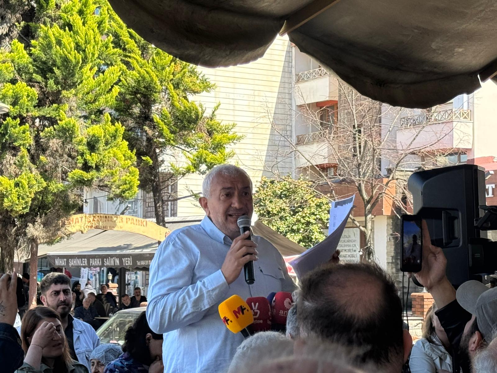 İlçe başkanım çok güzel söyledi: Biz komşuyuz. Şu cami avlusunda birlikte cenazemizi kaldırıyoruz. Yine bu avluda birbirimize başsağlığı diliyoruz. Düğün salonunda aynı horon halkasında oynuyoruz. Peki siz hangi yüzle bakacaksınız? Orada açıklama yapanlar, o bölgede yaşamayan, olmayan şeyleri yansıtan kişiler. İki gün önce Sabah gazetesinde zavallı birine Fındıklı hakkında haber yaptırmışlar. İsmi de geçiyor. Yazının sonu şöyle bitiyor: “Bu açıklamayı yapmayacaktık arkadaşlar.” Devamında ise Fındıklı Belediye Başkanı Ercüment Şahin Çervatoğlu’nun, suç örgütü kapsamında tutuklu bulunan İstanbul Büyükşehir Belediye Başkanı Ekrem İmamoğlu’nu desteklediği yazıyor. Onurumuzdur! Ekrem İmamoğlu onurumuzdur. Gürkan Altay onurumuzdur. Tutsaklar bizim onurumuzdur. Biz bu onuru ölene kadar taşırız. Evet biz halkımız için, bu devlet için, dedelerimizin ve atalarımızın bize emanet ettiği bu topraklar için bu onuru her zaman taşırız. Gerekirse gözümüzü kırpmadan canımızı veririz. Ama siz utanma duygusunu bitirdiniz. İnsanın utanma duygusu olur. Utanmıyorsa, ne söylerseniz söyleyin, insan olmaktan çıkar. Fındıklı’da kendini bilmez, utanma duygusunu yitirmiş kişiler AKP yönetiminde de var. Kadın kollarında yer almış kişiler yalan ve yanlış haberler yayıyor. Yalanın nerede olduğunu biliyor musunuz? Bunlar Allah’a şirk bile koşuyorlar.Bakın, cami avlusundayız. Şu şadırvanda amcalar soğukta titreyerek abdest alırken, bir haftada sıcak su bağlattık. Ama o hafta camide namaz kılanlara “soğuk suda abdest almak daha sevaptır” yalanını söyleyecek kadar ileri gittiler. Bu, inançlara saygısızlıktır. Bu, Allah’a şirk koşmaktır.Yalan çok. Buradan suç örgütü yaratmaya çalışıyorlar.” dedi