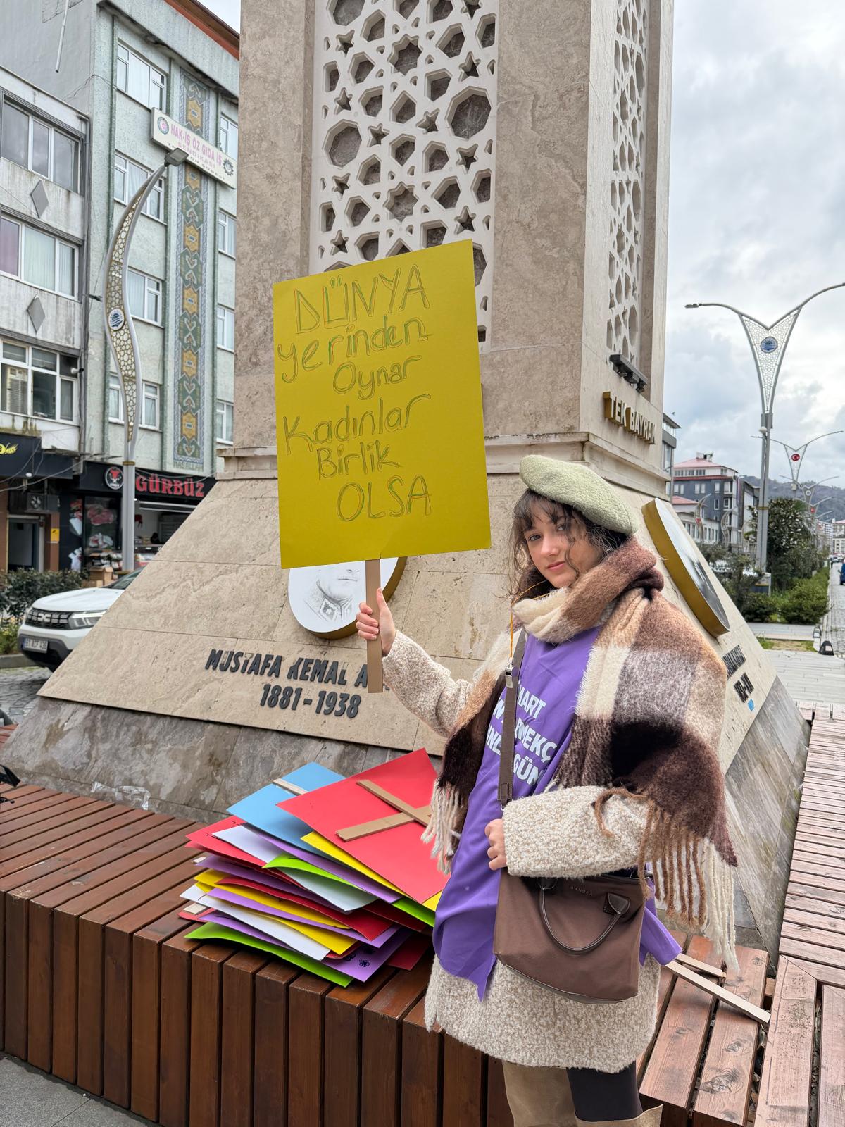 Biz Bugün Neden Buradayız? Buradayız çünkü; Şiddete Karşı Tek Sesiz 2025 verileri kadın cinayetlerinin ve ev içi şiddetin devam ettiğini gösterdi. Biz Of’tan şunu söylüyoruz: Hiçbir kadın yalnız yürümeyecek. Şiddete karşı tek ses olacağız. Buradayız Çünkü; Çay bahçesinden mutfağa kadar her alanı var eden emeğimiz hiçe sayılıyor. Bölgemizde çay tarımında çalışan kadınların %80’inden fazlası hâlâ sosyal güvenceden yoksun. Emeğimiz görünür olsun istiyoruz. Hakkımızı istiyoruz. Buradayız Çünkü; İnancımız, giyimimiz, fikirlerimiz nedeniyle kalıplara sokulmayı reddediyoruz. Kadın özgürlük mücadelesinin en saf haliyle, kendimiz olarak yaşamak hakkımız. Gözümüz ve kalbimiz sadece burada değil. Hemen yanı başımızda, İran’da savaşın ve baskının gölgesinde direnen kız kardeşlerimizin yanındayız. Savaşın karanlığına karşı barışın ve yaşamın tarafındayız.