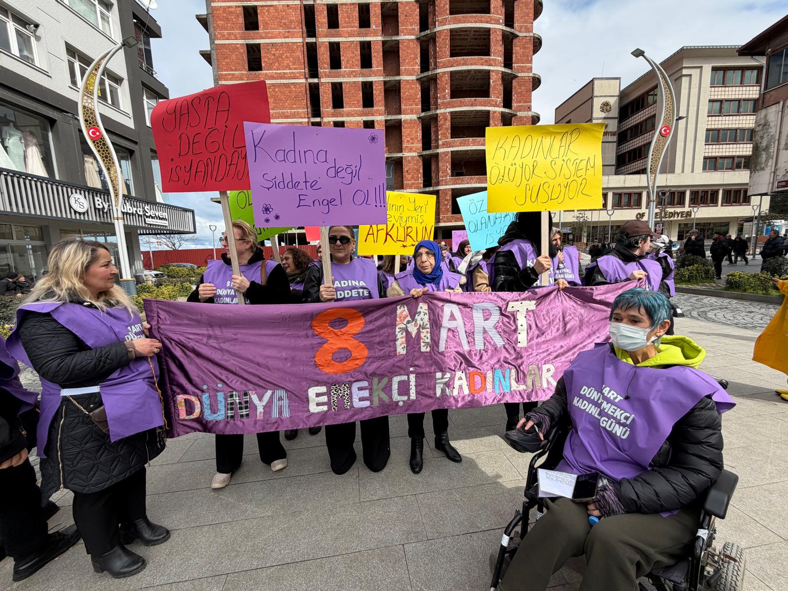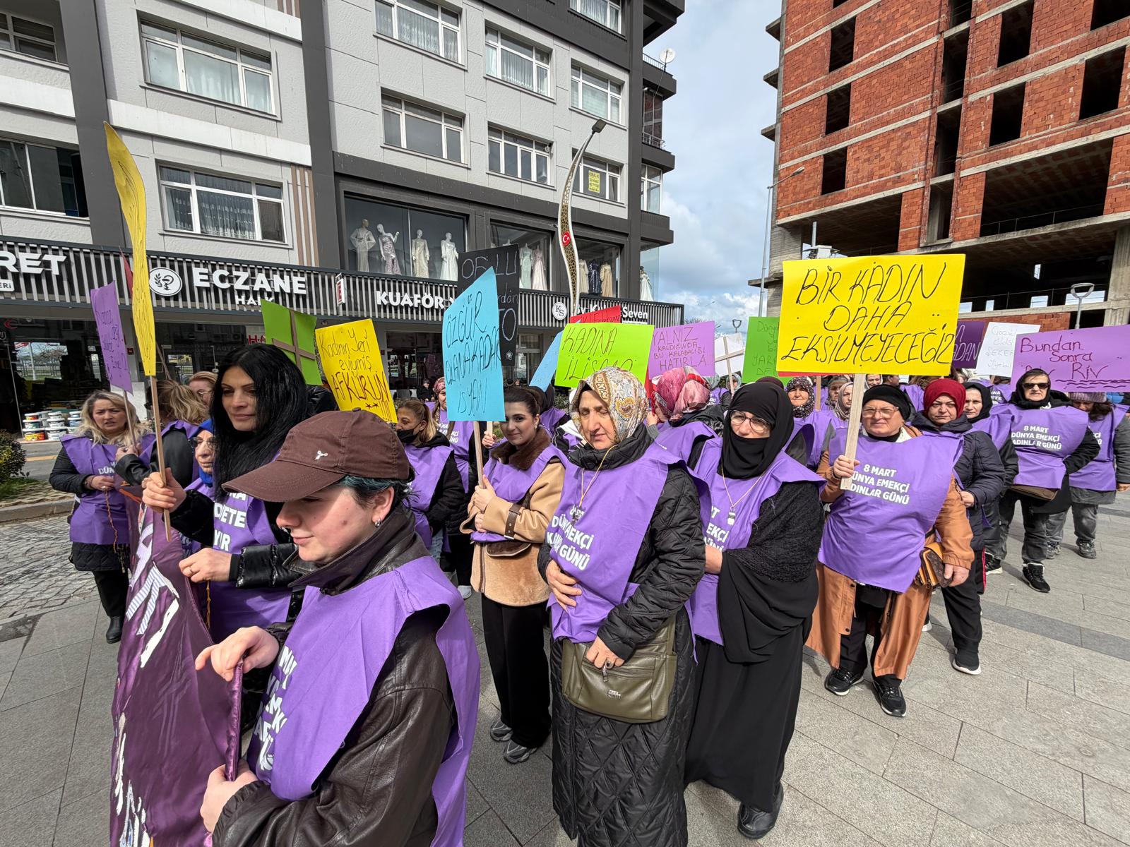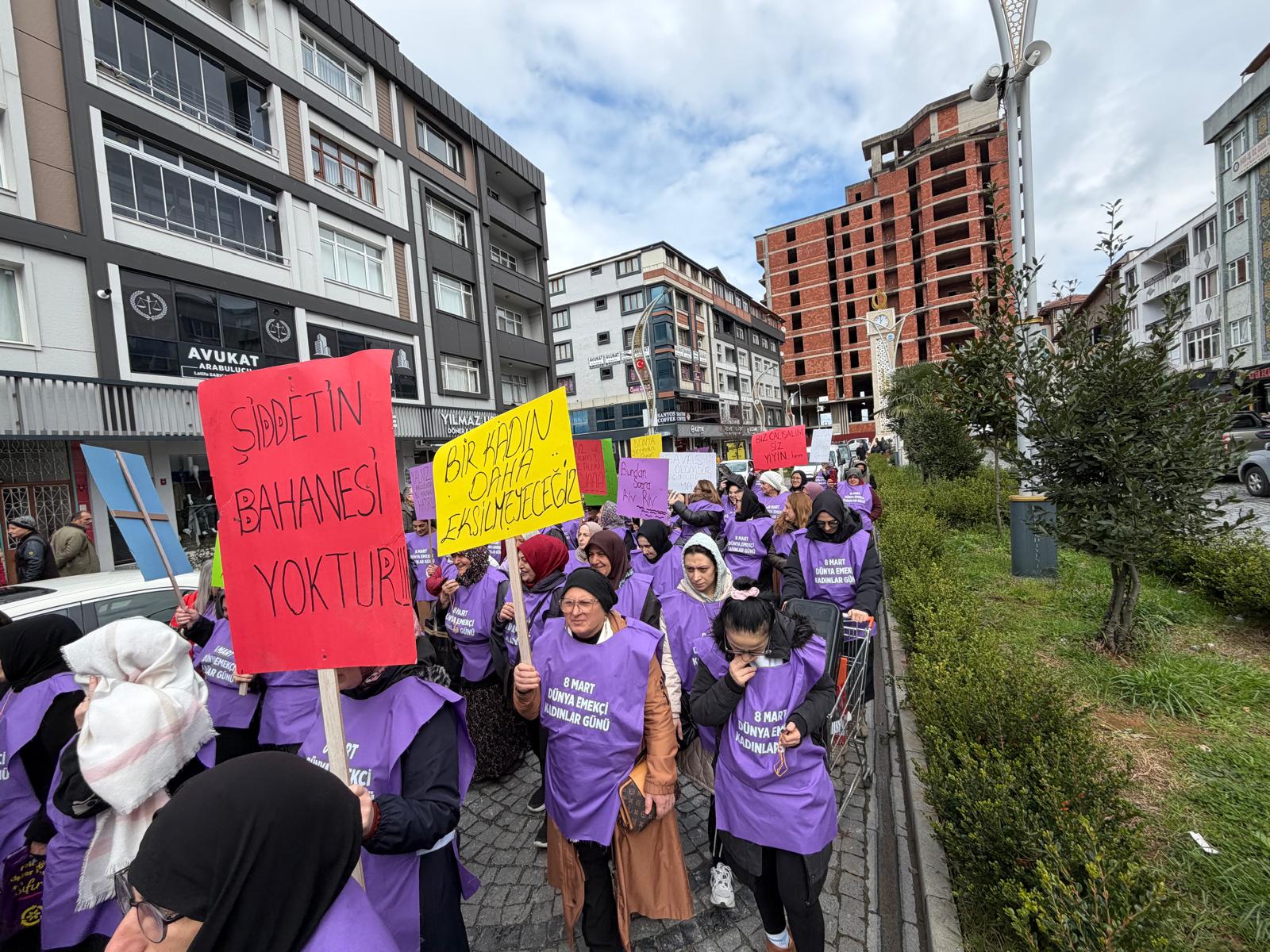 (TRABZON) –Trabzon’un Of ilçesinde kadınlar, ilk kez 8 Mart Dünya Emekçi Kadınlar Günü’nde yürüyüş düzenledi.Kadınlar, şiddet, savaş ve kadın emeğinin sömürülmesine karşı seslerini yükseltti.