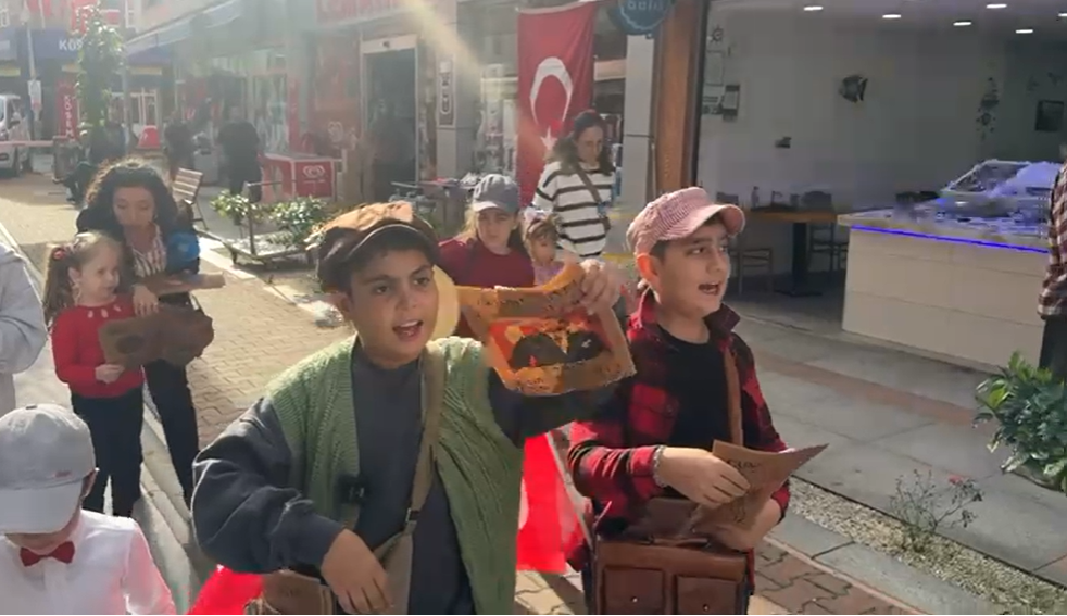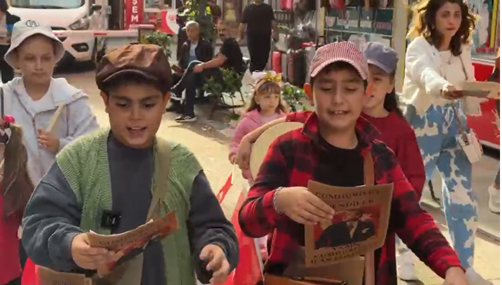 Etkinlik kapsamında çocuklar, ellerindeki broşürleri cadde üzerindeki esnafa ve vatandaşlara dağıtarak Cumhuriyet’in ilanının müjdesini o dönemin ruhuna uygun bir şekilde paylaştılar. Hazırlanan video çalışmasıyla da bu tarihi günü yeniden yaşattılar.