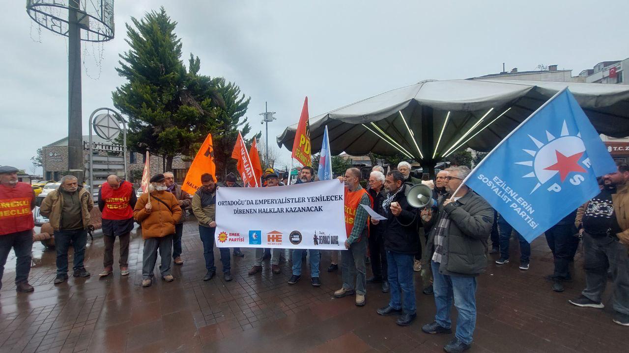 Cumhuriyet Caddesi Merkez Camii Meydanı’nda bir araya gelen Halkevleri, EMEP, ESP, Tüm Emekliler Meclisi, Proleter Devrimci Duruş ve İHD üyeleri, basın açıklaması öncesinde Fındıklı’nın sokak ve caddelerinde bildiri dağıtarak halkı eyleme çağırdı. Merkez Camii önünde yapılan basın açıklamasını Mustafa Zorlucan okudu.
