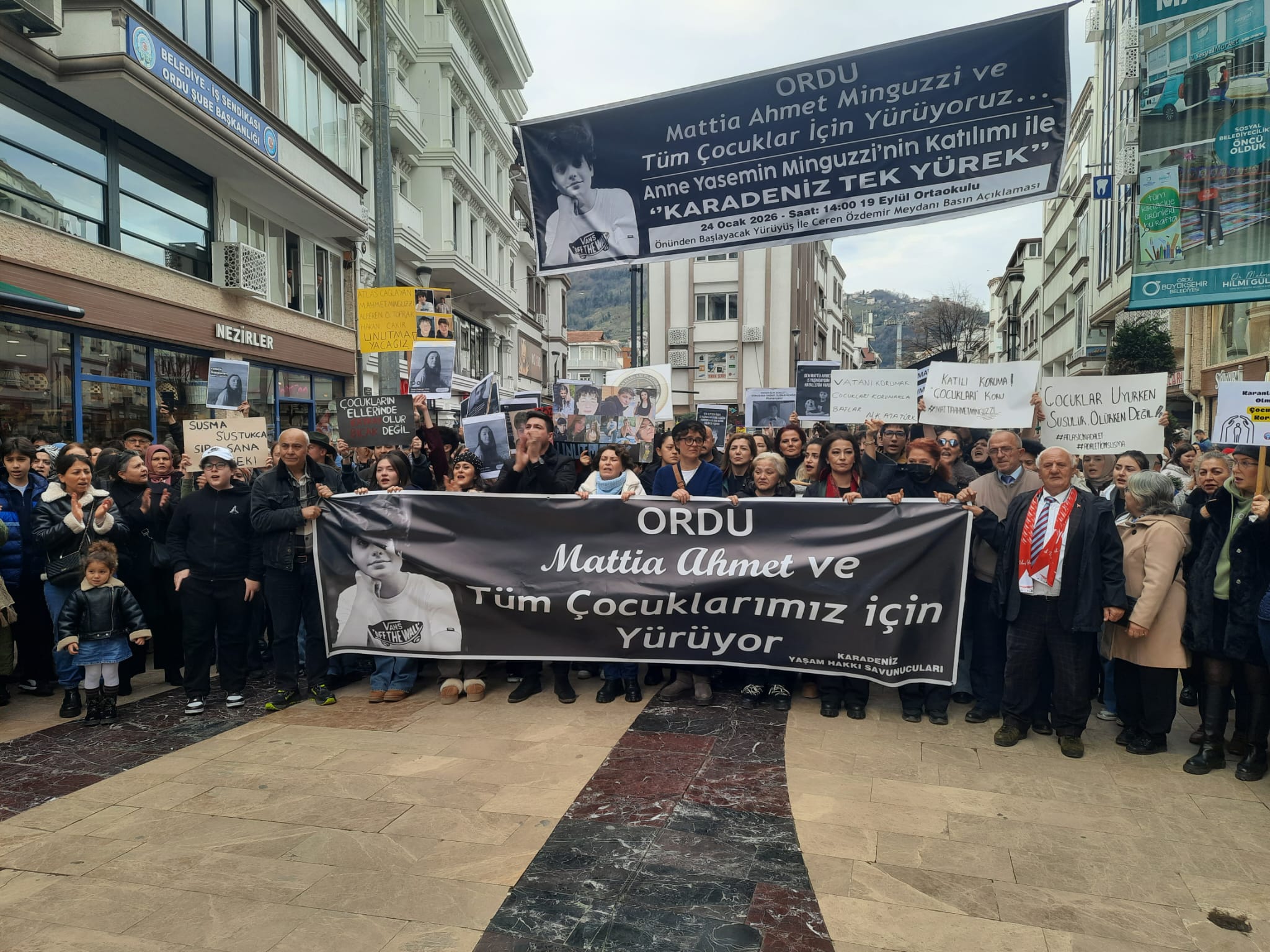 (ORDU) – İstanbul Kadıköy Salı Pazarı’nda 14 yaşındayken çocuklar tarafından bıçaklanarak öldürülen Mattia Ahmet Minguzzi, ölümünün yıl dönümünde Ordu’da düzenlenen yürüyüşle anıldı. 24 Ocak’ta gerçekleştirilen yürüyüşe Mattia Ahmet’in annesi Yasemin Minguzzi de katıldı. Yürüyüşte adaletin gecikmesine, cezasızlık politikasına ve çocukların yaşam hakkının ihlal edilmesine dikkat çekildi.