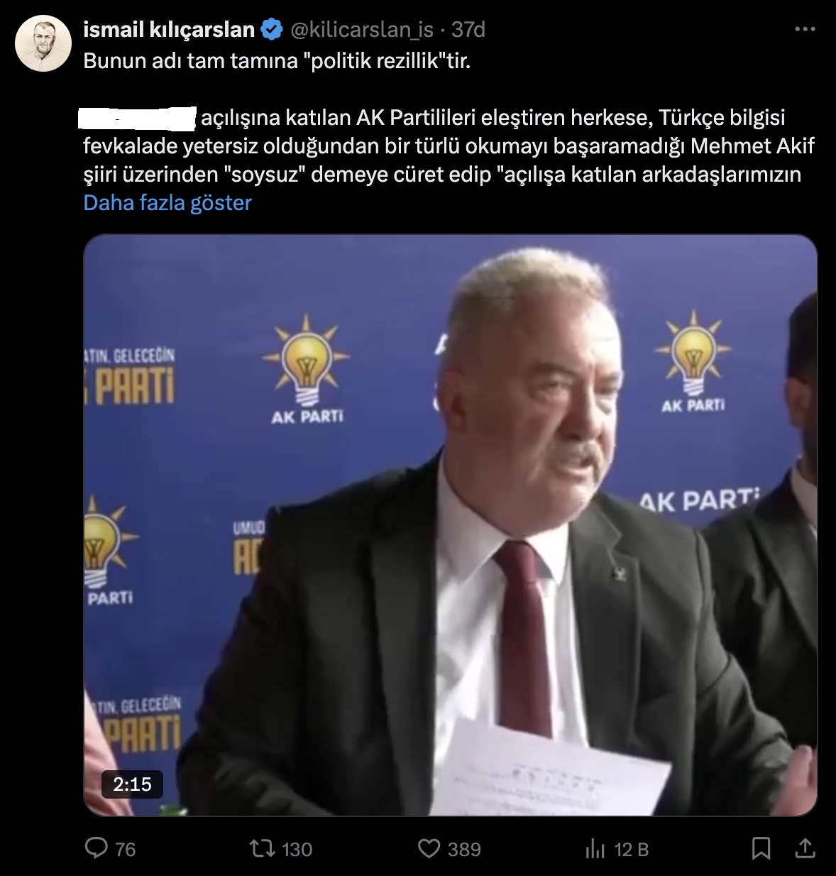 “ABD’li bir fast-food zincirinin açılışına katılanları savunup eleştirenlere ‘soysuz’ diyen bir il başkanı hem dil hem vicdan bakımından çökmüştür.